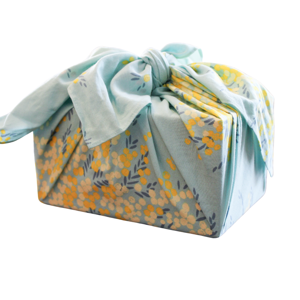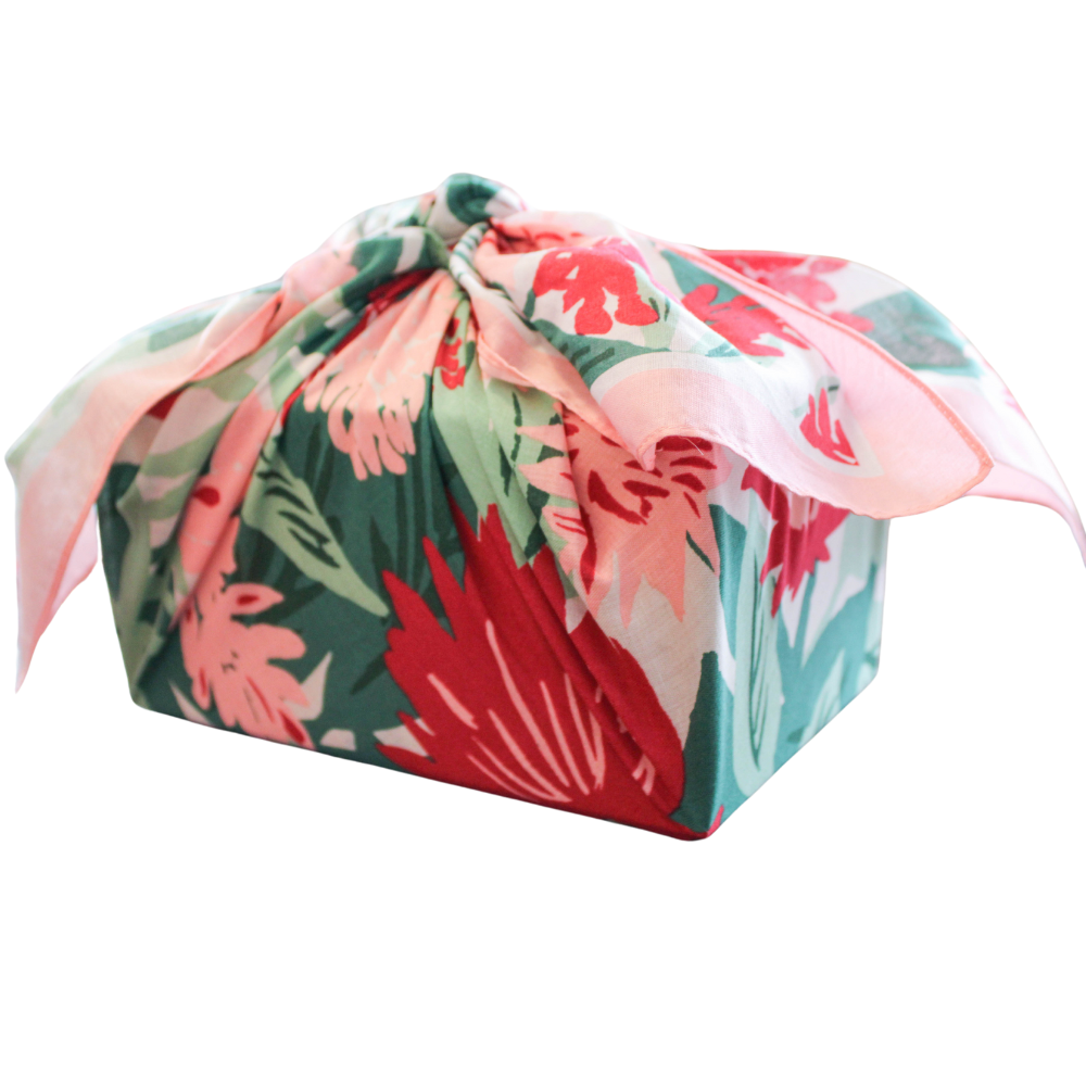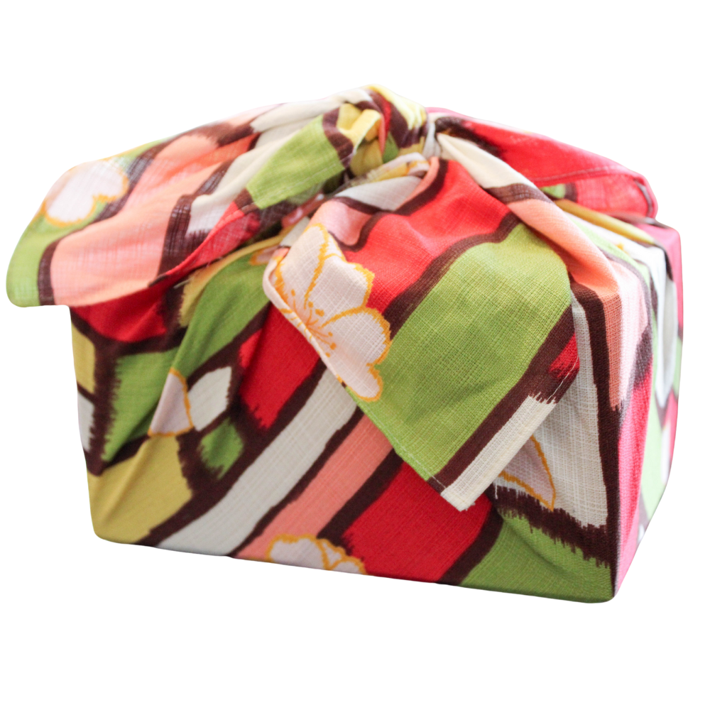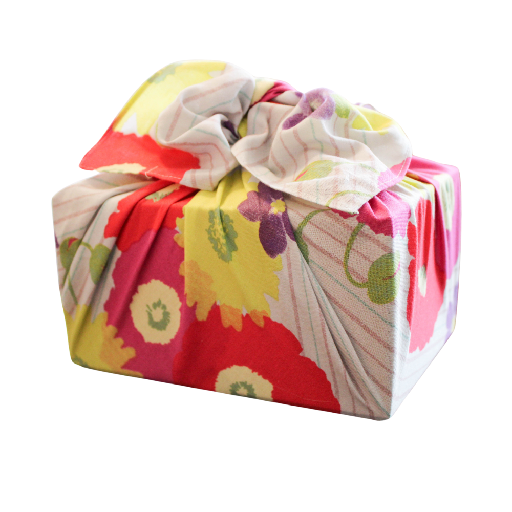 After gifting, the Furoshiki cloth unfolds to reveal its complete design below.